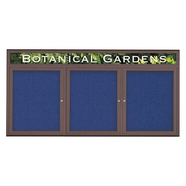 Corkboard, Triple Door, Radius Frame, Header, 72x36", Bronze/Cobalt (Discontinued)