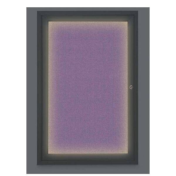 Corkboard,Lighted,Fabric,1 Door,24 x 36 In.,Blk/Amthy