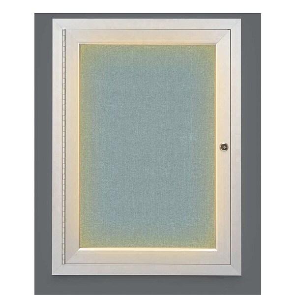 Corkboard,Lighted,Fabric,1 Door,Satin/Cld,18x24 In.