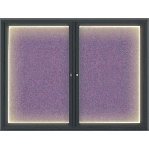 Corkboard,Lighted,Fabric,2 Door,42 x 32 In.,Blk/Amthy