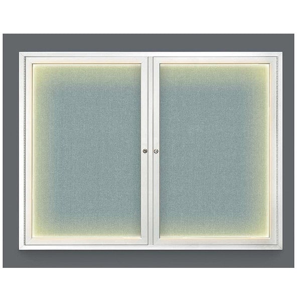 Corkboard,Lighted,Fabric,2 Door,Satin/Cld,42 x 32 In.