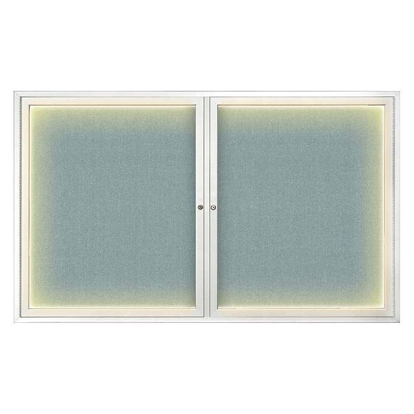 Corkboard,Lighted,Fabric,2 Door,Satin/Cld,60x36 In.