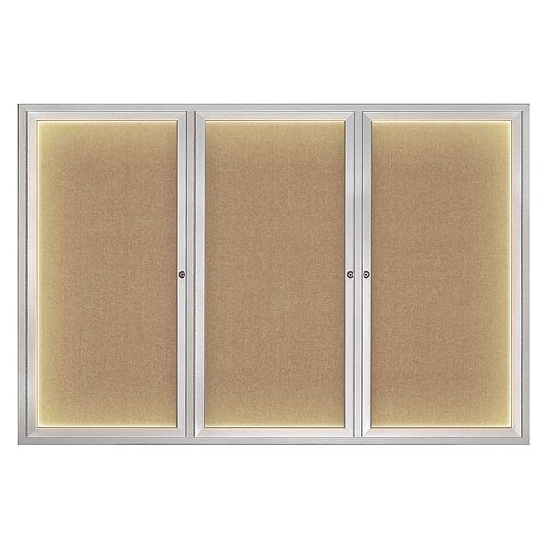 Corkboard,Lighted,Fabric,3 Door,Satin/Bff,72 x 48 In.
