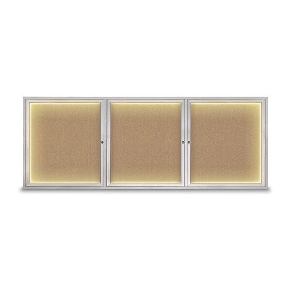 Corkboard,Lighted,Fabric,3 Door,Satin/Bff,96 x 36 In.