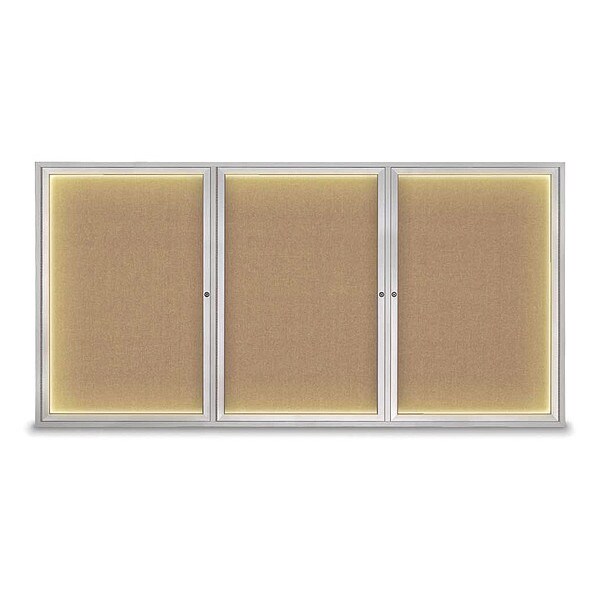 Corkboard,Lighted,Fabric,3 Door,Satin/Bff,96 x 48 In.