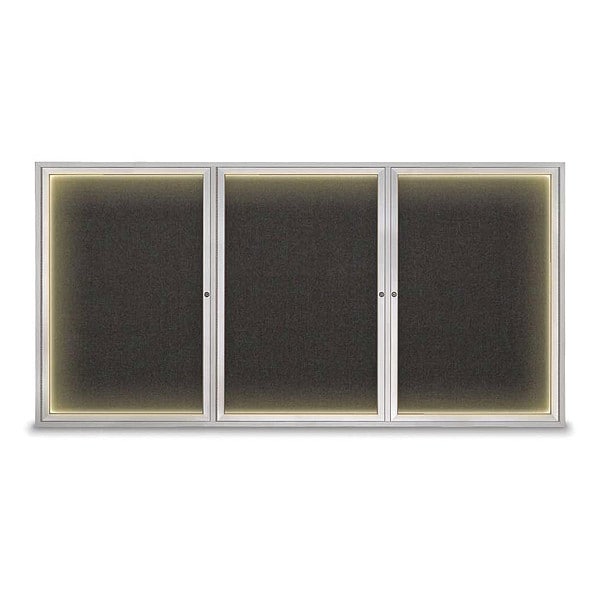 Corkboard,Lighted,Fabric,3 Door,Satin/Blk,96 x 48 In.