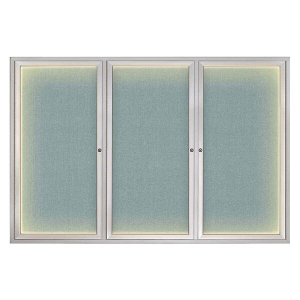 Corkboard,Lighted,Fabric,3 Door,Satin/Cld,72 x 48 In.
