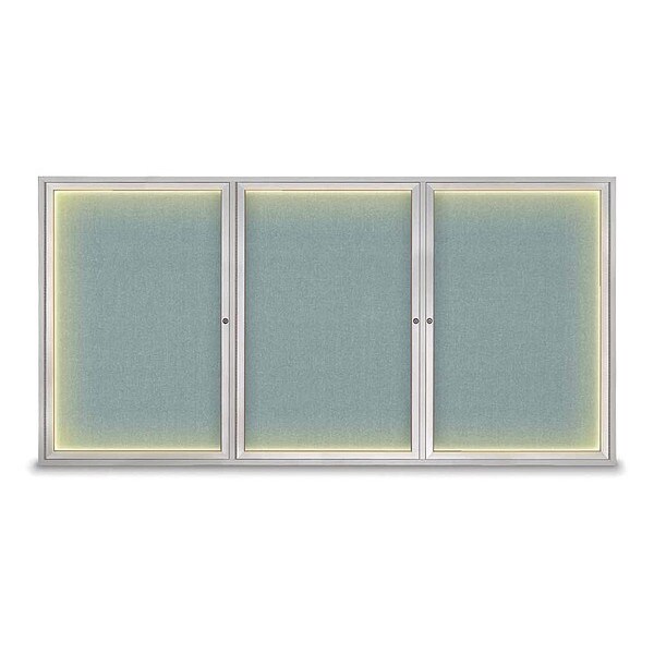 Corkboard,Lighted,Fabric,3 Door,Satin/Cld,96 x 48 In.