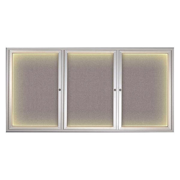 Corkboard,Lighted,Fabric,3 Door,Satin/Srf,72 x 36 In.