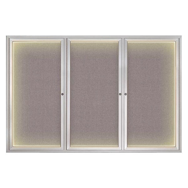 Corkboard,Lighted,Fabric,3 Door,Satin/Srf,72 x 48 In.