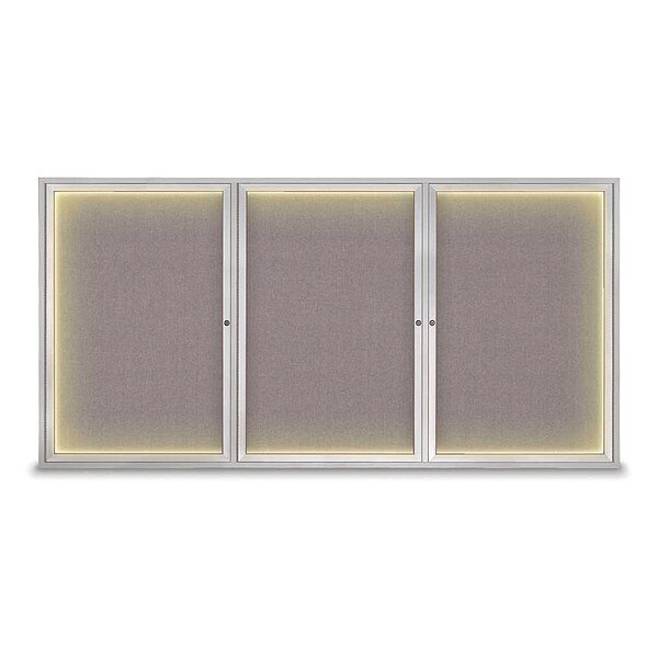 Corkboard,Lighted,Fabric,3 Door,Satin/Srf,96 x 48 In.
