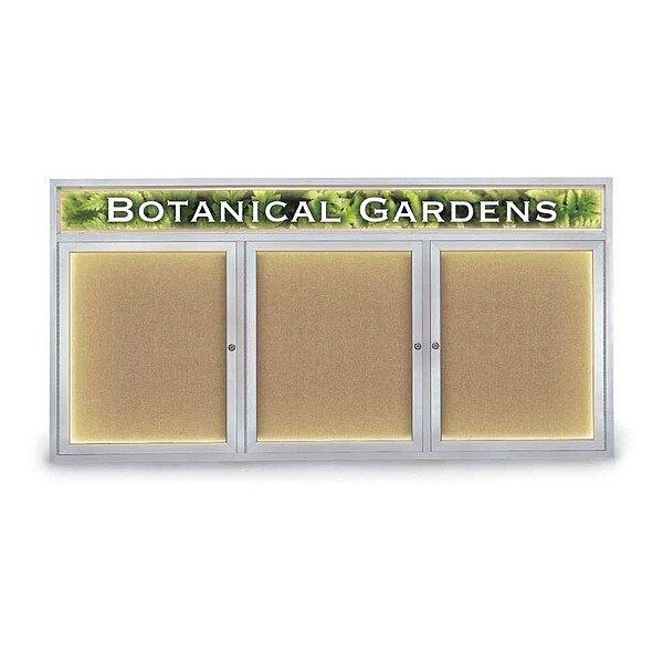 Corkboard,Lighted,Header,Fabric,3 Door,Stn/Bff,72 x 36 In.