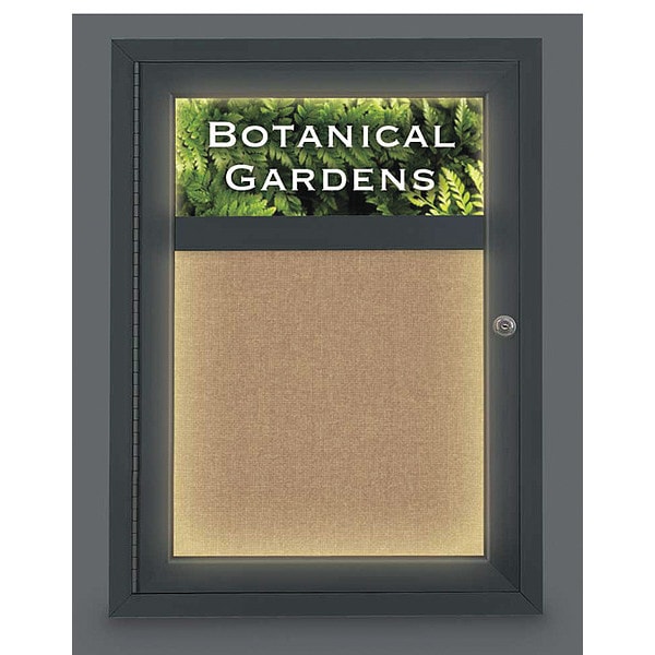 Corkboard,Lighted,Header,Fabric,Blk/Bff,1 Door,18x24 In.