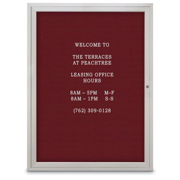 This board offers a timeless method of spelling out personalized statements in an outdoor sheltered area. The letter board surface contrasts with the white letters, making messages pop and easier for people to notice. The traditional design of the frame also alerts those passing by that the board contains crucial information, giving direction to the public. Each board features a shatter-proof acrylic panel within the lockable door mounted on full-length piano hinges (two keys are included).