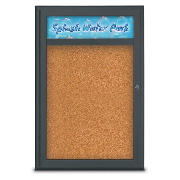 Single Door Radius Corkboard,Header,24 In.