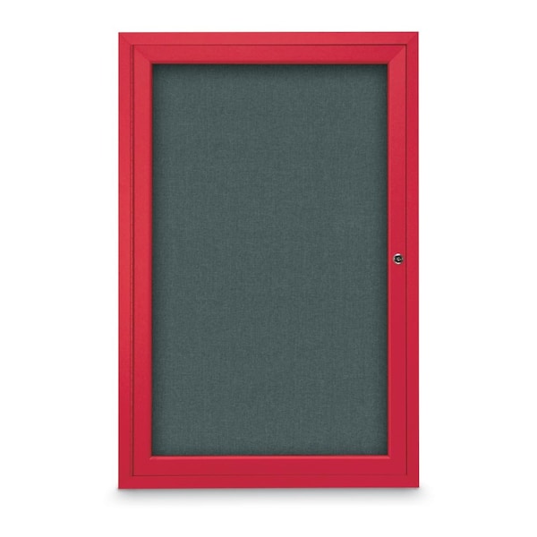 Slim Enclosed Corkboard, 18"x24", Black Alum Frame/Amethyst