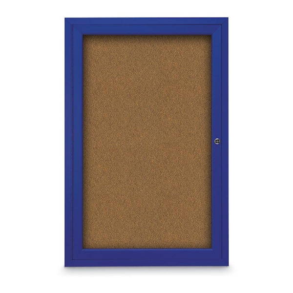 Slim Enclosed Corkboard, 18"x24", Black Alum Frame/Cobalt