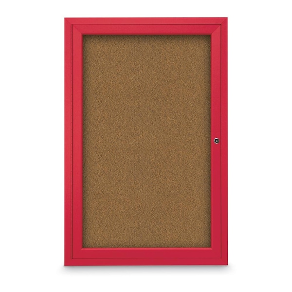 Slim Enclosed Corkboard, 18"x24", Bronze Alum Frame/Cobalt