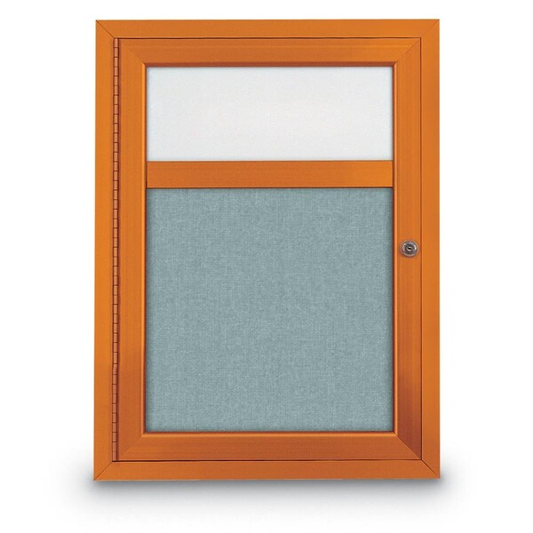 Slim Enclosed Corkboard, 30"x30", Bronze Alum Frame/Cobalt