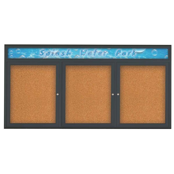 Triple Door Radius Corkboard,Header,72 In.