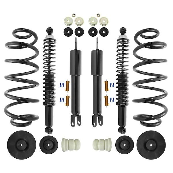 (2) Front Shock Absorbers, (2) Rear Coil Over Shock Absorbers, (2) Coil Springs, (4) Isolators, (2) Bump Stops