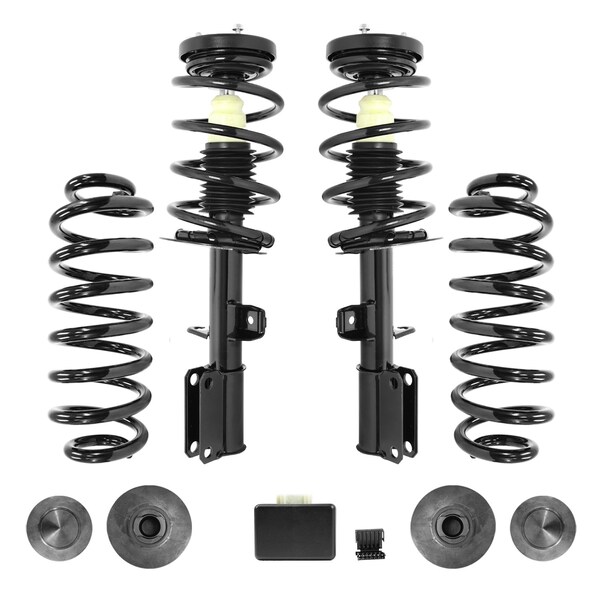 (2) Front Complete Strut Assemblies, (2) Rear Coil Springs, (2) Bottoms Mounts, (2) Top Rubber Isolators, (1) Ride Light Eliminator