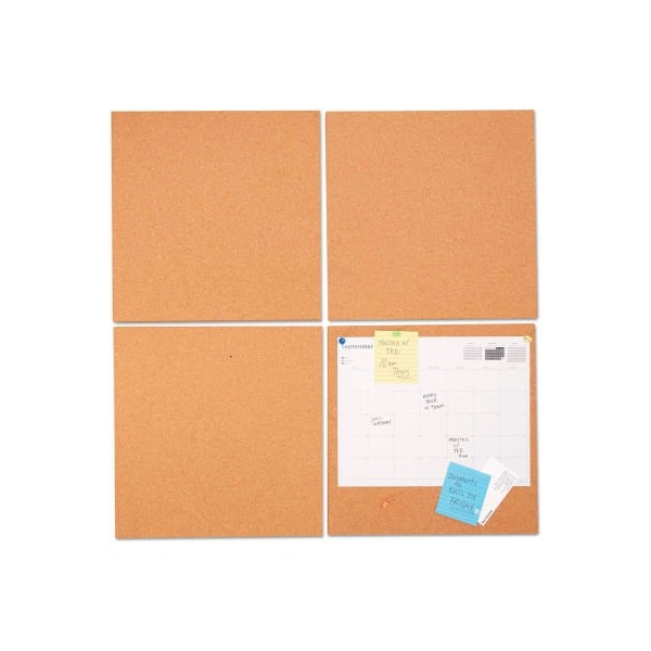 Bulletin Board Tile Panels - Natural Cork - 12in x 12in - Pack of 4