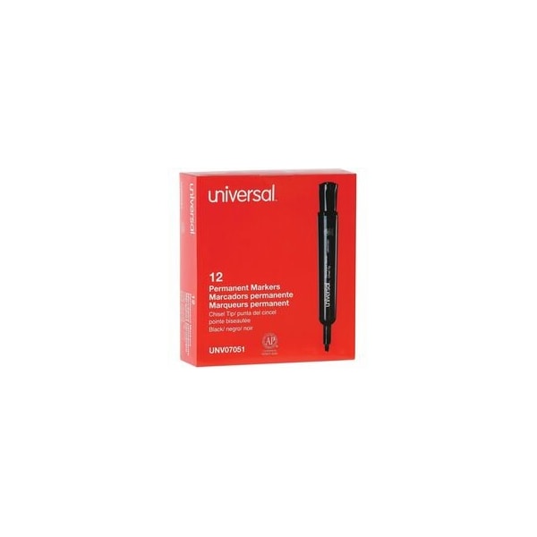 Universal Chisel Tip Permanent Marker makes a big impression with vibrant ink that stands out. The broader plastic barrel makes for an easy grip for hands of all sizes. Strong and bold permanent ink will write on almost any surface. Great for projects, labels, organizing, and offices. Low odor and non-toxic. Cap attaches securely over the tip when not in use and fits inside the barrel during use.