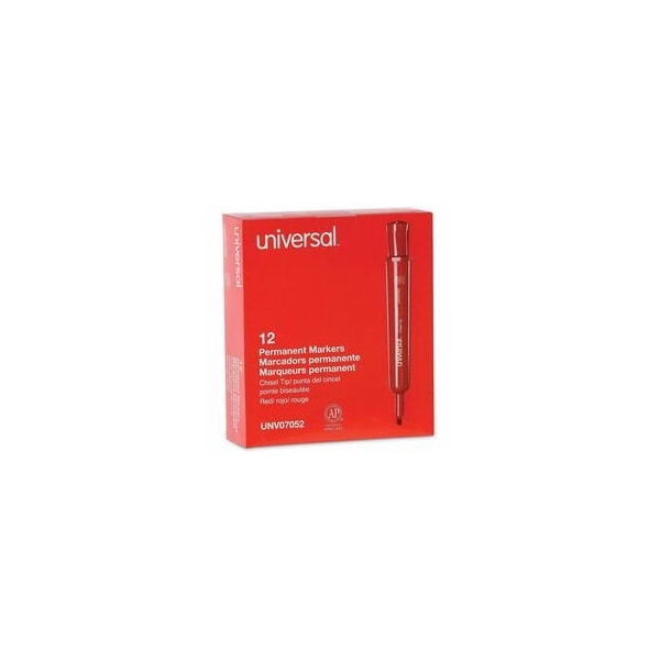 Universal Chisel Tip Permanent Marker, Broad, Red, Dozen