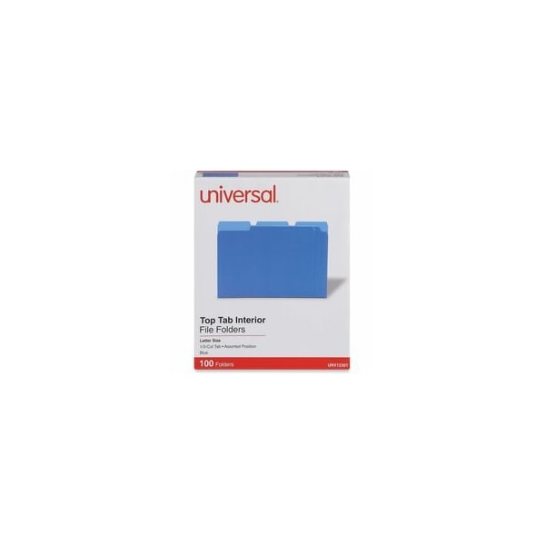 File Folders, Size Letter, 1/3 Tab Cut, Tab Position Assorted, Height 8 1/2 in, Width 11 3/4 in, 3/4 in Expanded Width, Color Blue, Package Quantity 100