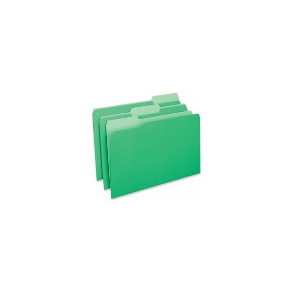 File Folders, Size Legal, 1/3 Tab Cut, Tab Position Assorted, Height 8 1/2 in, Width 14 3/4 in, Color Green, Package Quantity 100