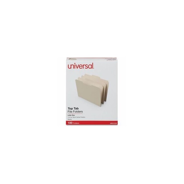 File Folders, Size Letter, 1/3 Tab Cut, Tab Position Center, Height 8 1/2 in, Width 11 3/4 in, Color Manila, Package Quantity 100