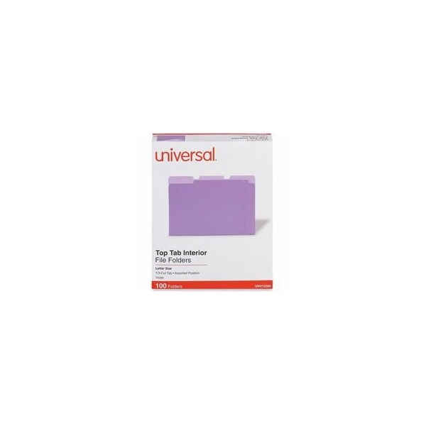 File Folders, Size Letter, 1/3 Tab Cut, Tab Position Assorted, Height 8 1/2 in, Width 11 3/4 in, 3/4 in Expanded Width, Color Purple, Package Quantity 100