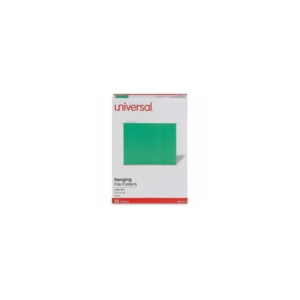 Hanging File Folders, Height 8 1/2 in, Width 11 3/4 in, Expanded Width 3/4 in, Color Green, Includes 1/5 Cut Plastic Tabs, Inserts, Package Quantity 25