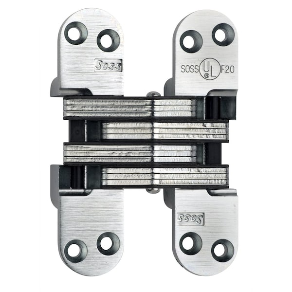 Soss 1-1/8" x 4-5/8" Heavy Duty Invisible Spring Hinge for 1-3/4" Doors Satin Nickel Finish