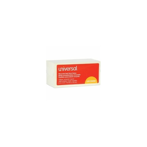 Recycled Sticky Note Pad, Sheet Size 3 x 3 in, Rule Plain, Paper Color Yellow, Recycled Content Contains 30 Percent post-consumer recycled content., Package Quantity 18