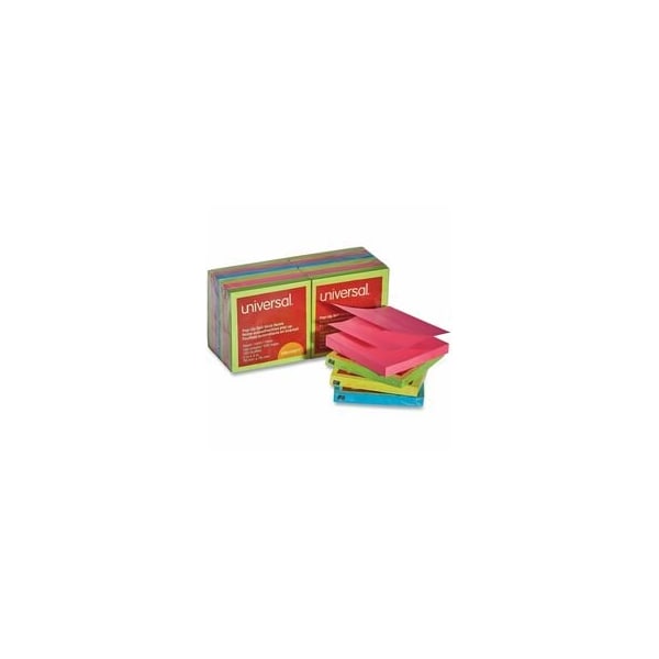 Sticky Notes, 3 in x 3 in, Adhesion Standard, Color Assorted Bright, Recycled Content 0 Percent, Sheets per Pad 100, Rule Unruled, Pads per Pack 12, Package Quantity 12