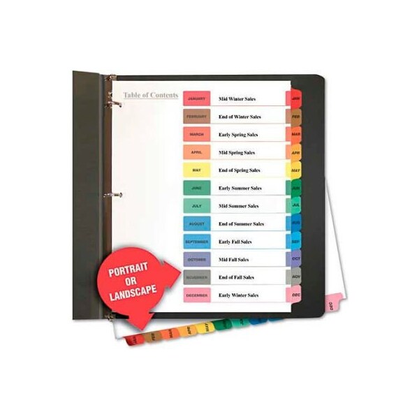One Table of Contents Dividers, Assorted Color 12-Tab, Months, Letter, White