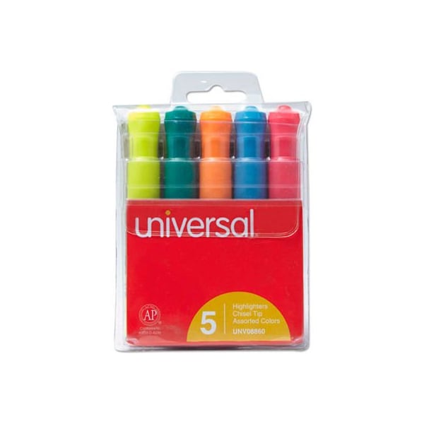 Desk Highlighter, Five-Color Set, Chisel Tip, Pocket Clip