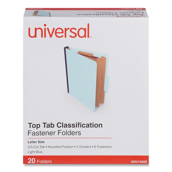 Six-Section Pressboard Classification Folders, 2 Dividers, Letter Size, Light Blue, PK20, 20PK (Discontinued)