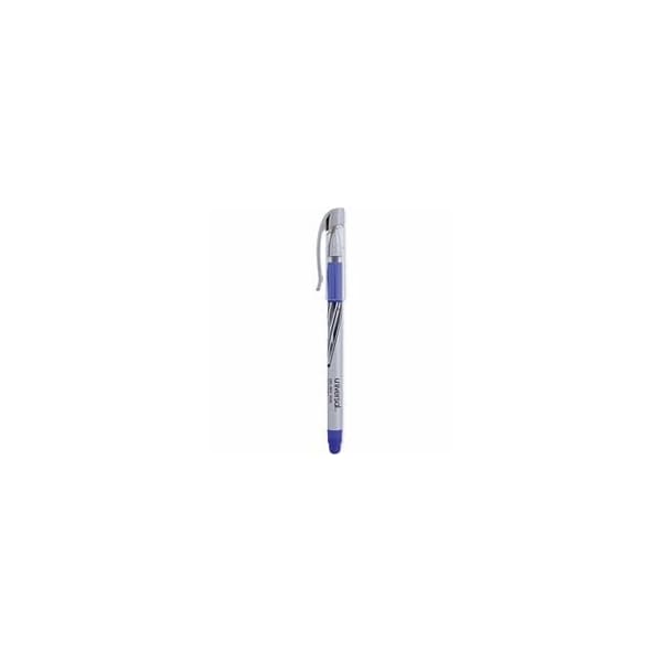 Universal Stick Gel Pen, Medium 0.7mm, Blue Ink, Silver/Blue Barrel, Dozen