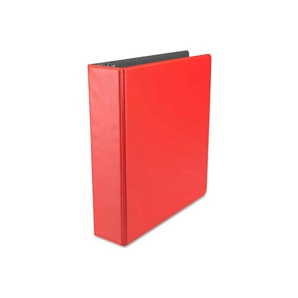 Universal suede finish vinyl round ring binder, 2" capacity, red add, remove and replace documents faster using binder's open-and-close trigger feature. Elegant, suede-finish cover looks great while repelling soil like messy fingerprints. Two inside pockets provide extra storage for loose documents. This product was made from wood that came from a certified managed forest. Capacity range [max]: 2"; sheet capacity: 375; color(s): red; binder sheet size: 11 x 8 1/2. larger quantity quotes available. Please call 1-888-978-7759. this product arrives to most customers in 2-3 business days.