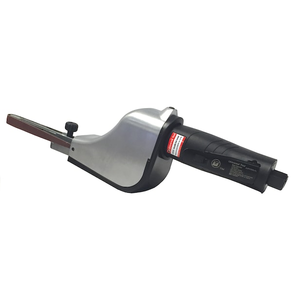 Superior belt tracking permits use of 1/4", 1/2" X 24 long belts; Advanced ergonomic design composite grip; Low weight composite belt guard allows quick and easy belt changes; Safety Lock off throttleBuilt in regulator adds control; Interchangeable contact arms; 0.5 HP motor provides power for sanding, grinding, deburring, blending or polishing