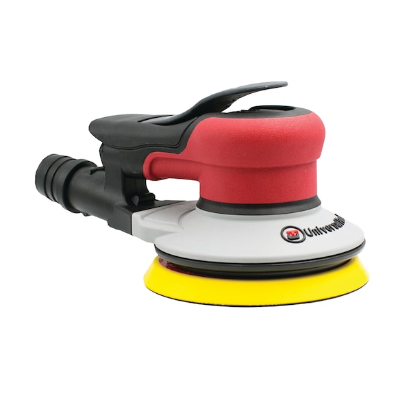 5" Pad with 3/16" orbit Central Vac; Central Vacuum; 1.6 CFM air consumption and 6.2 CFM continuous running under load; Advanced silencing technology reduces noise to 75-78 dBA; Patented double sealed, lubrication free motor prevents dust contamination of the motor and eliminates the need for oiling; Universal Tool "smooth design" throttle lever and ergonomic grip; Patented anti vibration motor reduced vibration to 0.8 m/sec2; Low weight sander of 2 lbs.