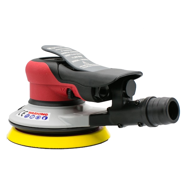 5" Pad with 3/16" orbit Self Vac; Self Vacuum; 1.6 CFM air consumption and 6.2 CFM continuous running under load; Advanced silencing technology reduces noise to 75-78 dBA; Patented double sealed, lubrication free motor prevents dust contamination of the motor and eliminates the need for oiling; Universal Tool "smooth design" throttle lever and ergonomic grip; Patented anti vibration motor reduced vibration to 0.8 m/sec2Low weight sander of 2 lbs.