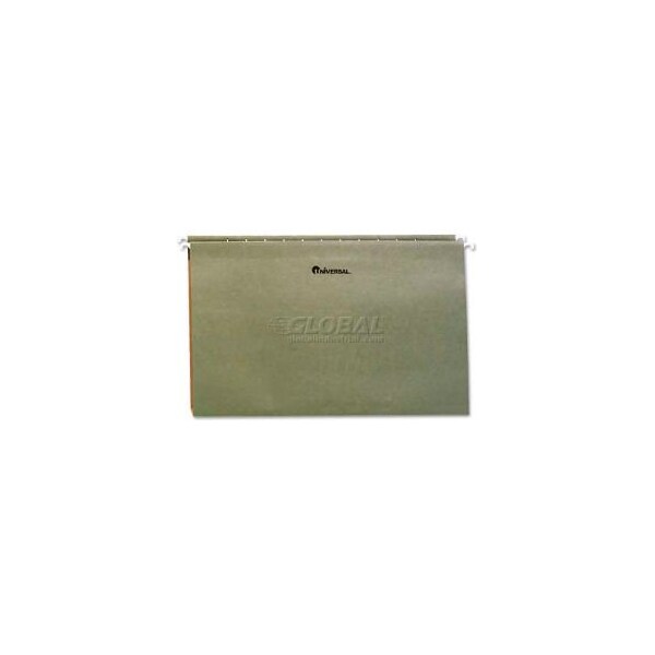 Universal one inch box bottom pressboard hanging folder, legal, standard green, 25/box bulky loads are no problem with this flat bottom design. Sturdy 11 pt. Stock delivers long wear. Slotted for 1/3 or 1/5 cut tabs (not included). Hanging file folder type: box bottom; size: legal; expansion: 1". this product arrives to most customers in 2-3 business days.