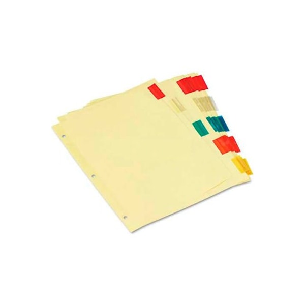 Universal three-hole punched, buff sheets with blank tab inserts. Single-sided clear mylar reinforced binding edge. larger quantity quotes available. Please call 1-888-978-7759. this product arrives to most customers in 2-3 business days.