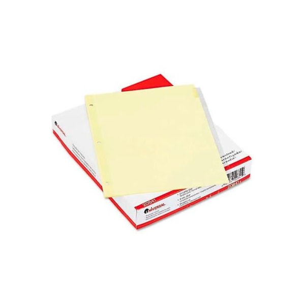 Universal three-hole punched, buff sheets with blank tab inserts. Single-sided clear mylar reinforced binding edge. larger quantity quotes available. Please call 1-888-978-7759. this product arrives to most customers in 2-3 business days.