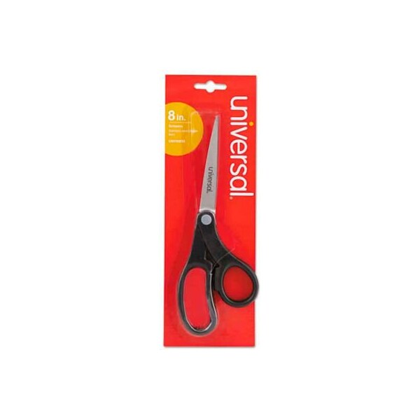 Universal Economy Scissors, 8" Length, Bent Handle, Stainless Steel, Black