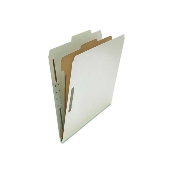 Universal pressboard classification folder, letter, four-section, gray, 10/box find the right fit for your file with these three options. Whether you need four, six or eight filing surfaces, these heavy-duty folders will protect and organize documents. 2" capacity fasteners inside sturdy 25 pt. Covers and 1" capacity fasteners on both sides of 17 pt. Kraft dividers. Tyvek reinforced gussets for expansion. 2/5 cut tabs, right of center. Classification folder type: top tab; size: letter; number of sections: 4. this product arrives to most customers in 2-3 business days.